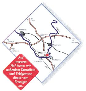 sind wir: Von Süden oder Norden: Bundesautobahn A 7 Ausfahrt Marktbreit Richtung Kitzingen, dann über die Mainbrücke. Von Westen: Bundesautobahn A 3 Ausfahrt Randersacker B 13 bis Ochsenfurt. Dann am Main entlang über Frickenhausen oder Marktbreit. Von Osten: Bundesautobahn A 3 Ausfahrt Kitzingen oder B 8 bis Kitzingen Richtung Ochsenfurt. Am Main entlang über Sulzfeld oder Marktbreit. |